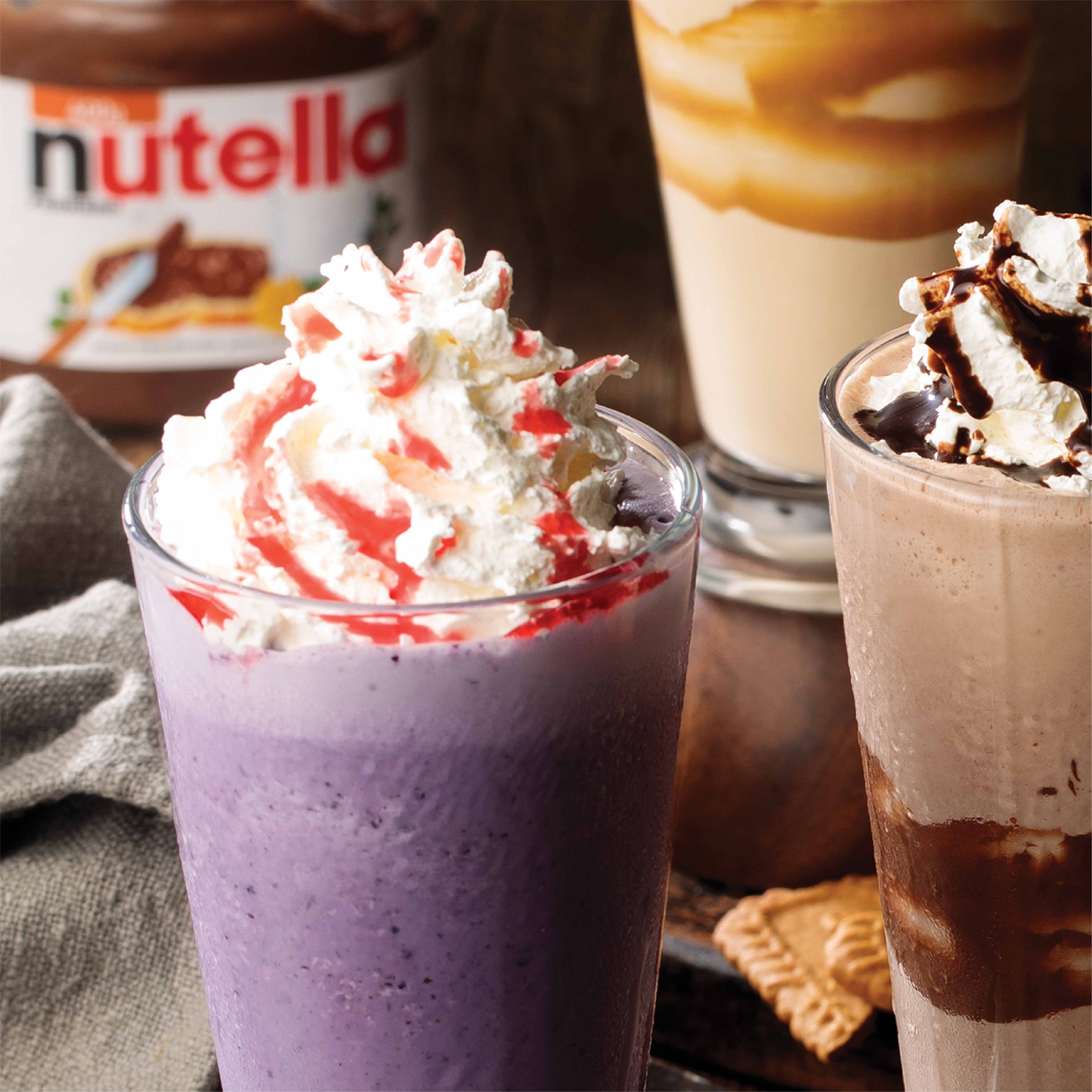 Nutella shake with milk and ice cream garnish with cream and chocolate.