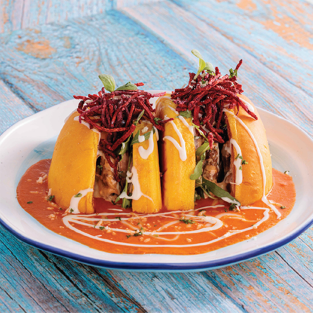 Crunchy onions stuffed with freshly grilled seasoned minced beef stuffed in a slider bun.