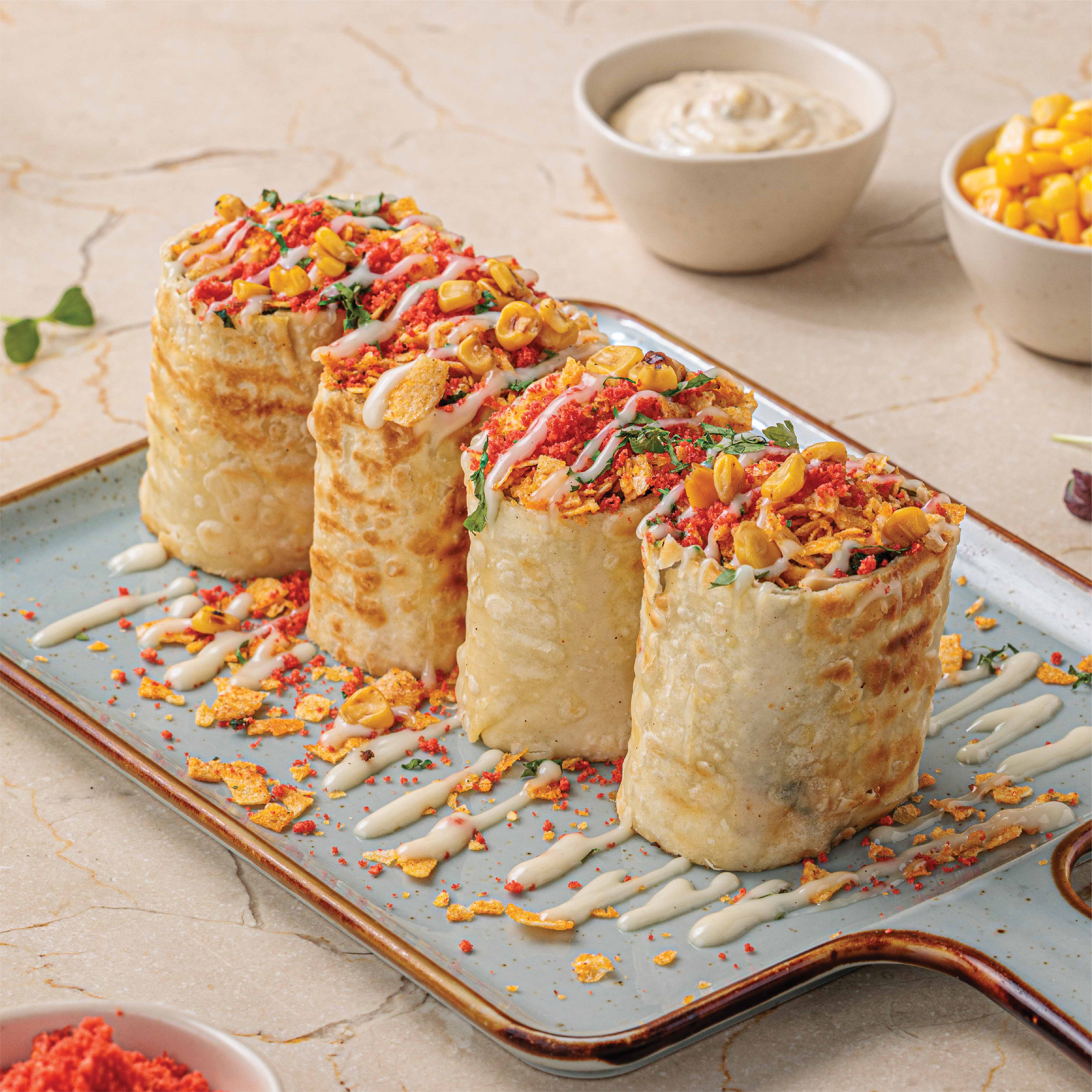 All spices flavoured chicken slices rolled in a saj bread with special sauce.
